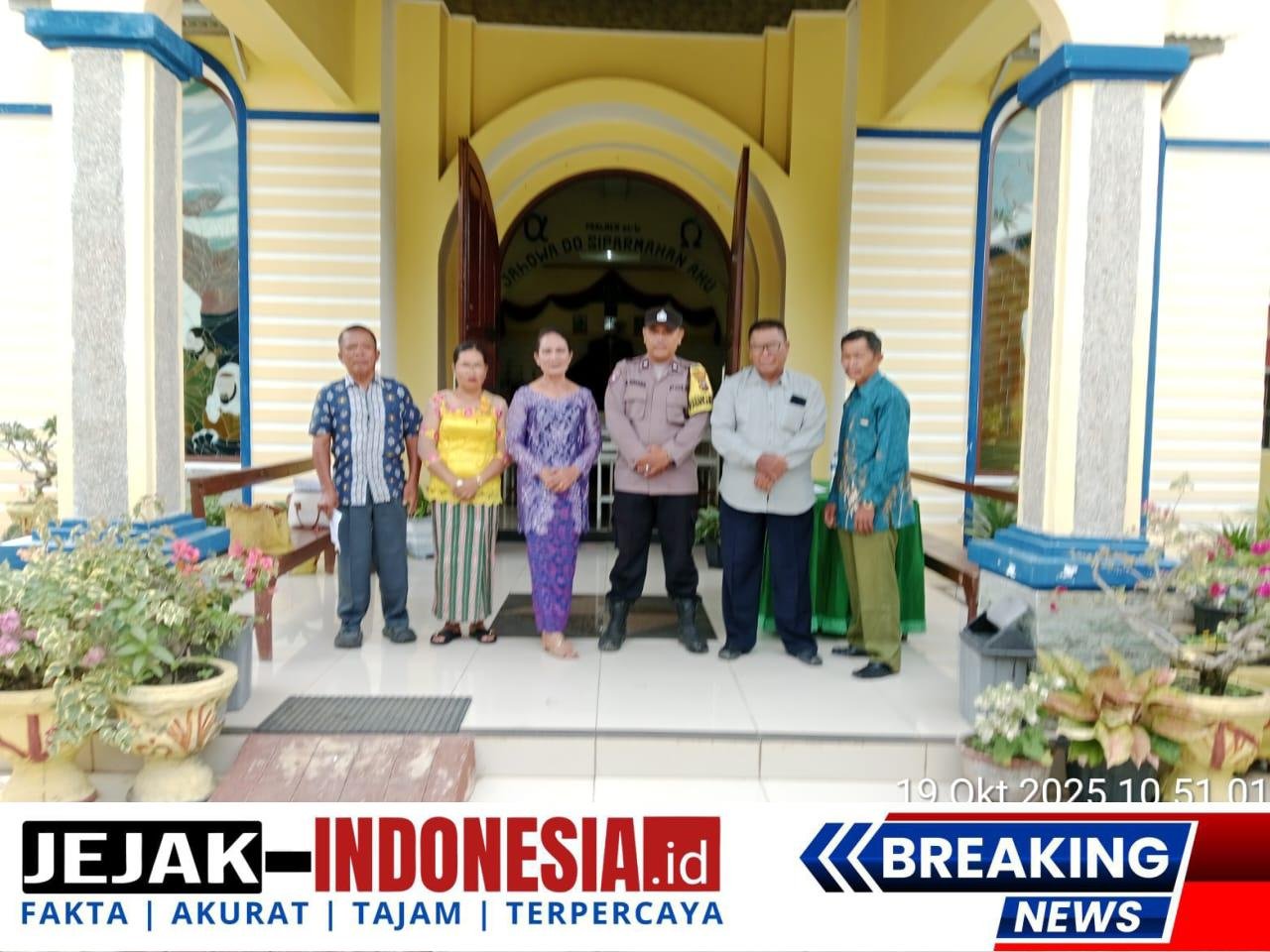 SIMALUNGUN || jejakindonesia.id – Bhabinkamtibmas Polsek Bosar Maligas, Aipda H. Sinaga, melaksanakan kegiatan sambang, monitoring, dan pengamanan ibadah Minggu di Gereja HKBP Pasar Baru, Kelurahan Bosar Maligas, Kecamatan Bosar Maligas, Kabupaten Simalungun, Minggu (19/10/2025). Kegiatan yang berlangsung mulai pukul 10.00 WIB hingga selesai ini diikuti oleh 80 jemaat yang hadir untuk menjalankan kebaktian Minggu.