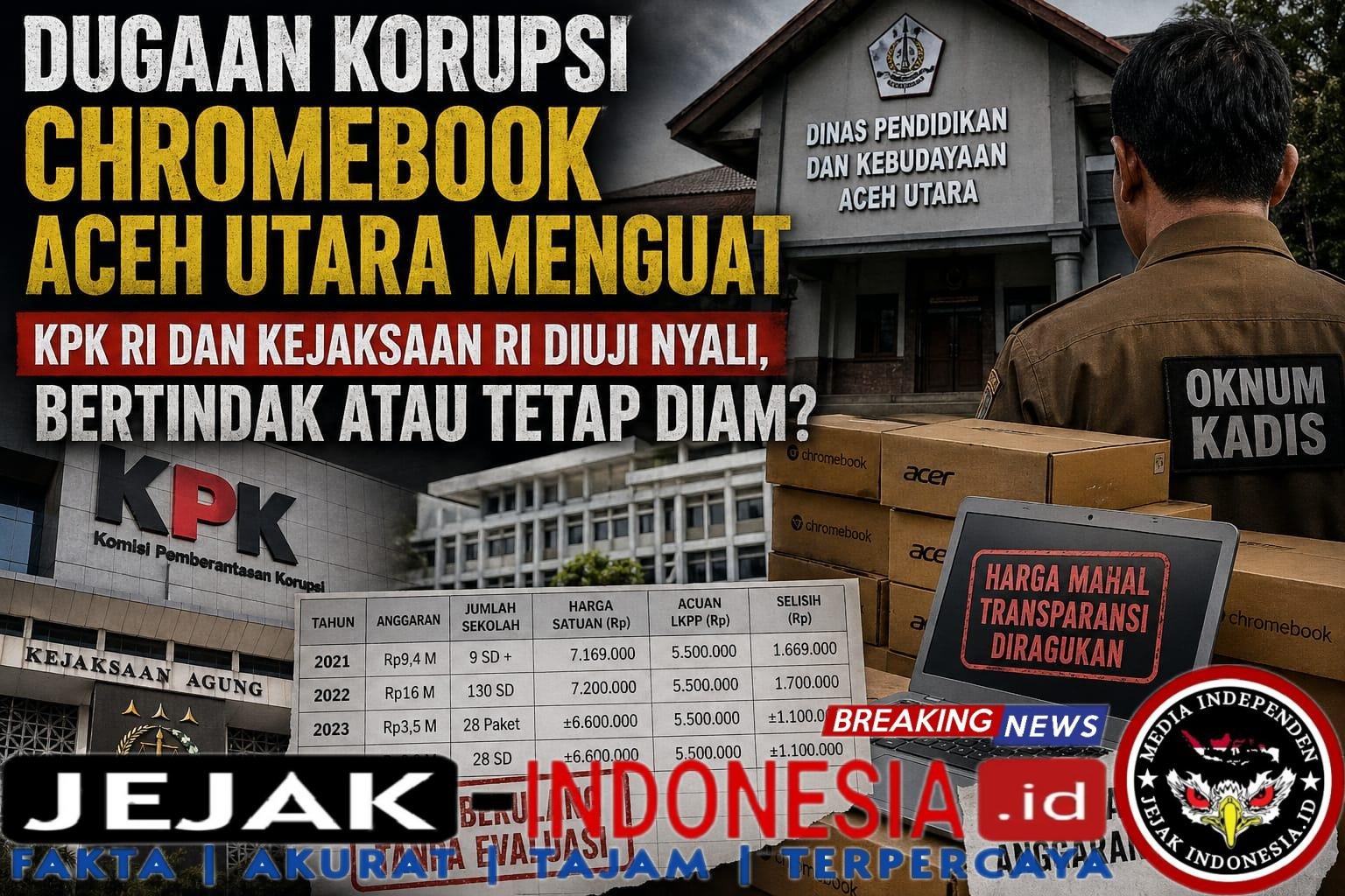 Dugaan Korupsi Chromebook Aceh Utara Menguat, KPK RI dan Kejaksaan RI Diuji Nyali, Bertindak atau Tetap Diam?