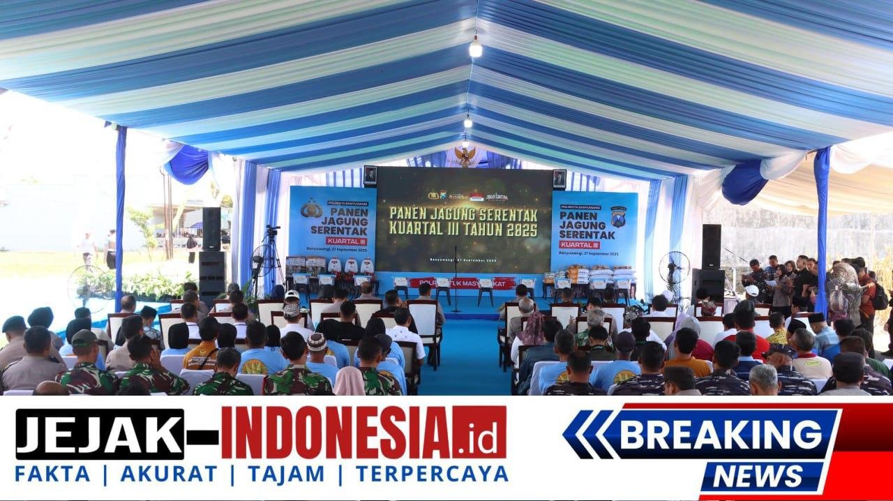 BANYUWANGI || jejak-indonesia.id – Kasdim 0825/Banyuwangi Mayor Kav Suprapto menghadiri kegiatan Panen Raya Jagung Kuartal III yang digelar di lahan pertanian milik Polresta Banyuwangi, bertempat di Jl. Winongko, Kelurahan Sobo, Kecamatan/Kabupaten Banyuwangi, Sabtu (27/09/25).
