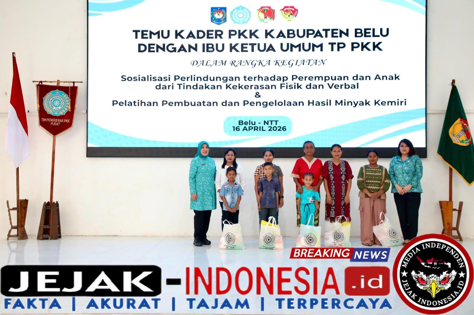 Penegasan tersebut disampaikan Tri saat menghadiri Temu Kader PKK Kabupaten Belu bersama Ibu Ketum TP PKK dalam rangka kegiatan “Sosialisasi Perlindungan terhadap Perempuan dan Anak dari Tindakan Kekerasan Fisik dan Verbal dan Pelatihan Pembuatan dan Pengelolaan Hasil Minyak Kemiri”. Kegiatan tersebut berlangsung di Gedung Wanita Betelalenok, Kabupaten Belu, Nusa Tenggara Timur (NTT), Kamis (16/4/2026).