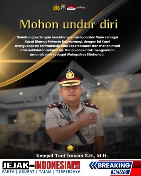 Melalui pesan terbuka yang disampaikan kepada Kapolresta Banyuwangi, Wakapolresta, para Pejabat Utama (PJU), serta seluruh Kapolsek jajaran Polresta Banyuwangi, Kompol Toni menyampaikan rasa terima kasih yang mendalam atas kebersamaan, dukungan, dan sinergi selama menjalankan tugas.