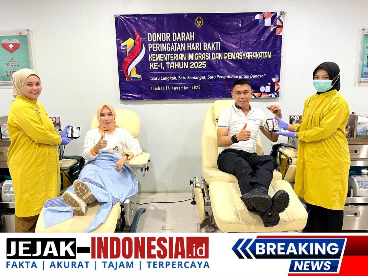 JEMBER || jejakindonesia.id – Dalam rangka memperingati Hari Bakti Kementerian Imigrasi dan Pemasyarakatan (Kemenimipas) RI ke-1 Tahun 2025, Lembaga Pemasyarakatan (Lapas) Kelas IIA Jember menggelar kegiatan aksi kepedulian, berupa donor darah dan bakti sosial di panti asuhan, Jum’at (14/11/2025).