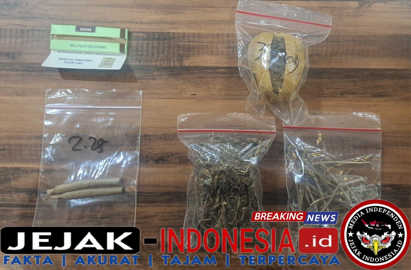 Saat dilakukan penggeledahan, polisi menemukan satu bungkus ganja yang disimpan di saku celana tersangka.